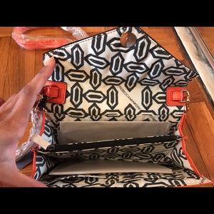 Rebecca Minkoff Orange Studded Crossbody NWT -- Envelope style cross body with card slots and change/money section with zipper. Plain back with slot to store additional goodies! Gold chain and stud details.