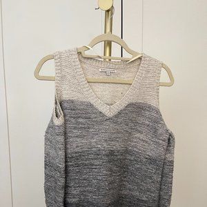 Rebecca Minkoff Page V Neck Cold Shoulder Knit Sweater, Grey Ombré, Size XS