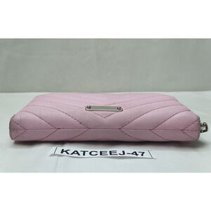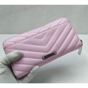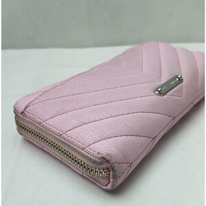 Rebecca Minkoff Pink Leather Chevron Quilted Zip Around Credit Card Wallet