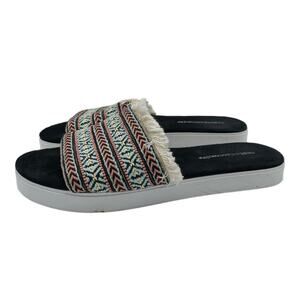 Rebecca Minkoff Printed Fringe Trim Slide Sandals - 9