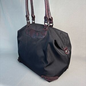 Rebecca Minkoff Purse Shoulder Bag Black Nylon Tote with Red Snakeskin & Spikes
