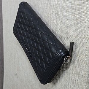 Rebecca Minkoff Quilted Black Leather Zip Around Wallet