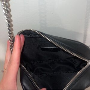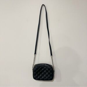 Elegant black quilted crossbody bag with chain strap. Perfect for any occasion. Silver studs. Small size.