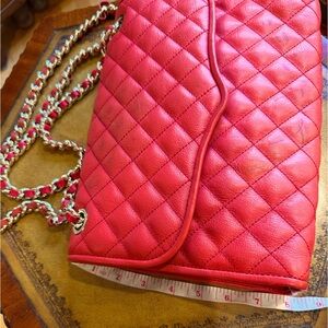 Quilted Affair Red Leather convertible crossbody/shoulder bag with gold hardware 8 x11x2” Some scuffs on front see pics Questions? Leave a comment below