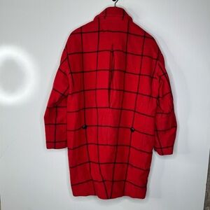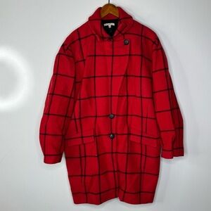 Rebecca Minkoff Red Windowpane Plaid Trench Coat Size Small