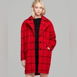 Rebecca Minkoff Red Windowpane Plaid Trench Coat