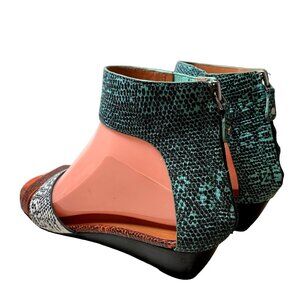 Rebecca Minkoff Sandals Womens 7.5 Wedge Ankle Strap Zip Multicolor Animal Print