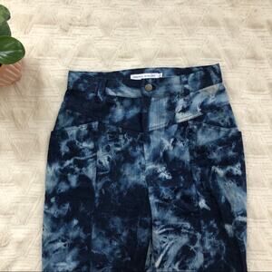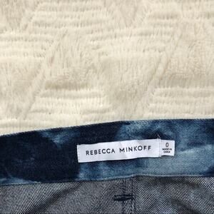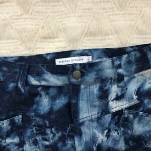 In good condition. "Denim with an extra off-duty feel, these Rebecca Minkoff jeans are enhanced with tie-dye and a double-yoke high-rise for a comfortable, weekend-ready pair." Mid-weight, 100% cotton non-stretch denim in a cool tie-dye print. Button closure and zip fly. Slant front pockets and patch back pockets