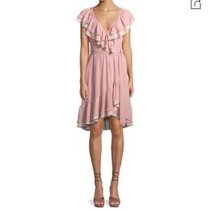 REBECCA MINKOFF Sarah Ruffle Wrap Knee-length Dress In Light Pink/ Pink