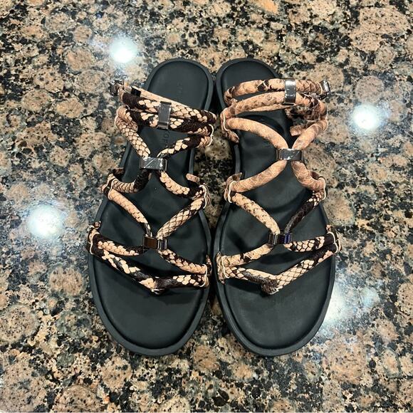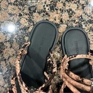 New without box. Size 6 1/2. No flaws. Flat, pink with snake print, has ankle strap.