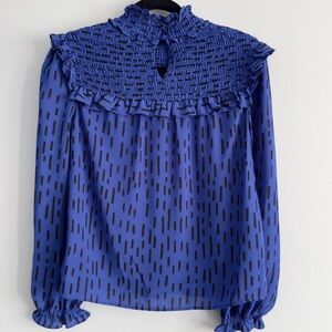 Rebecca Minkoff Sharon Smocked Printed Top Women’s XS Cobalt Blue Sprinkles