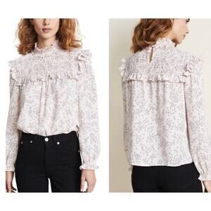 Rebecca Minkoff Sharon Smocked Ruffled Star-Print Top In Blush Pink Size Large