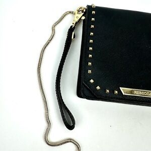 Rebecca Minkoff Shea Tech Crossbody Black Serafino Leather Gold Chain Studded