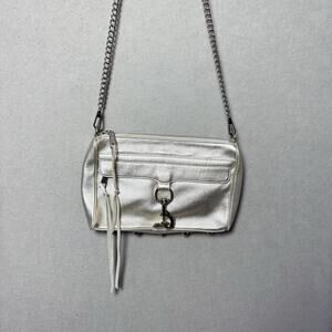 Rebecca Minkoff Silver Pebble Leather Crossbody Bag with Silver Chain Strap