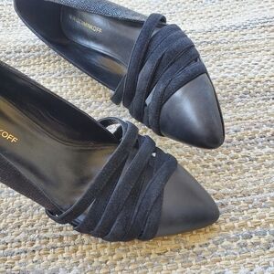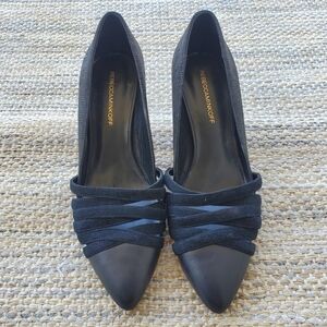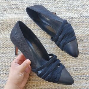 Rebecca Minkoff Snake Print Leather Suede Crisscross Studded Heels Black 10