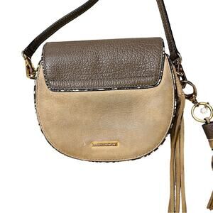Rebecca Minkoff Suede Snake Print Crossbody Bag Tan Black