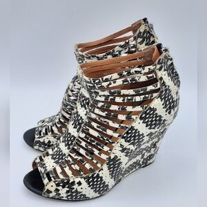 Rebecca Minkoff Sydney Snake Print Cage Wedge Sandal Size 7.