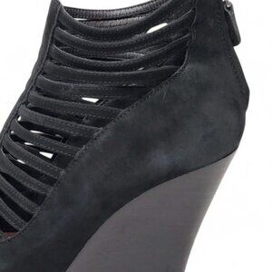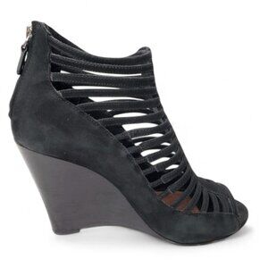 Rebecca Minkoff Sydney Wedge Heels Women's Cage Cutout Black Suede Gladiator.