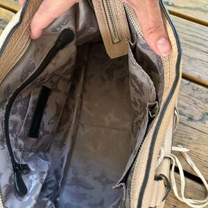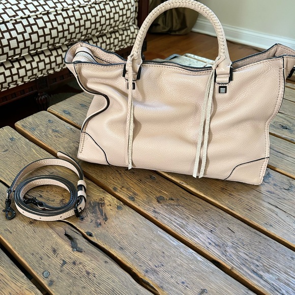 This Minkoff satchel has been an excellent partner to me. She features beautiful nude/tan-colored leather with a roomy interior. Her sturdy handles and detachable/adjustable crossbody strap make her perfect for everyday use.