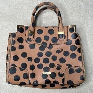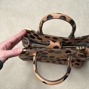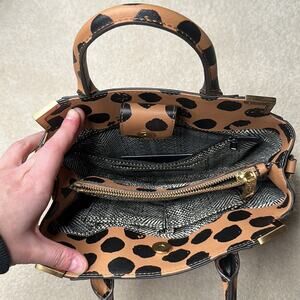 Great condition! Beautiful brassy hardware on a neutral tan & black fun print. Can be carried or worn as a crossbody. Genuine leather.