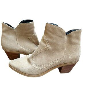 Rebecca Minkoff Tan Suede Heeled Western Ankle Boots Side Zip Boho Neutral 8.5