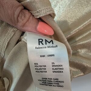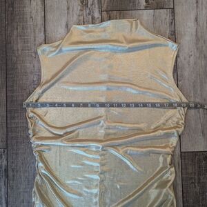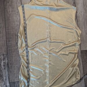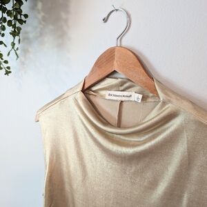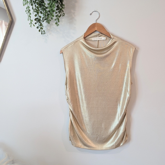 New Rebecca Minkoff gold metallic cowl neck tank top with ruched sides for a comfortable fit. Perfect for layering or wearing alone.