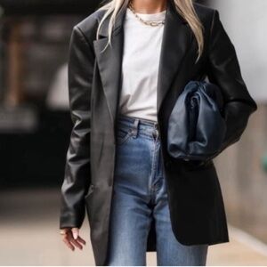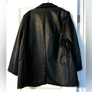 Black Faux Leather Collared Blazer