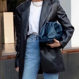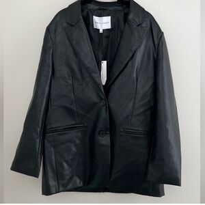 Rebecca Minkoff Vegan Leather Lambskin Blazer in Black, Luxury Designer