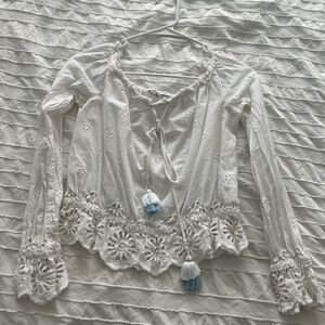 Rebecca Minkoff White Eyelet Blouse with Tassels