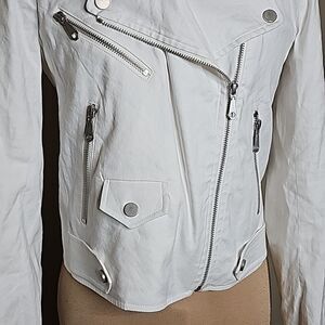 Rebecca Minkoff White Moto Jacket assymetric zip linen blend small in excellent condition except for a couple small blemishes on sleeve.