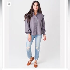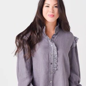 Cute almost like denim top. Great with jeans. 100 percent tencel. Soft and flowy.
