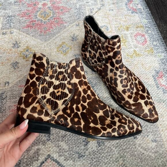 Rebecca Minkoff Women Maydsin Leopard Pointed Toe Calfskin Ankle Boots Size 7