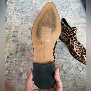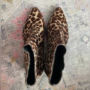 Excellent condition Rebecca Minkoff Women Maydsin Leopard Pointed Toe Calfskin Ankle Boots Sz 7 Worn a couple of times real cow hair fur leather fabric. Fur from Brazil, made in china