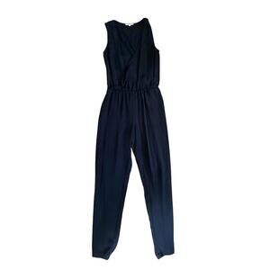 Rebecca Minkoff Women's 8 Silk Jumpsuit V Neck Black Mara Crossover Jogger Cuff