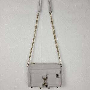 Rebecca Minkoff Womens Mini Mac Crossbody Bag Gray Leather Chain Strap Purse