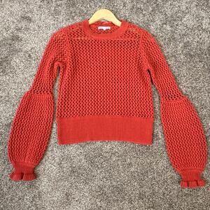 Rebecca Minkoff Women's Size Small Rust Orange Open Knit Bianca Sweater Boho Festival