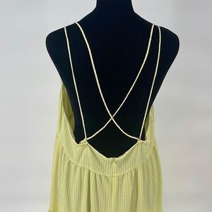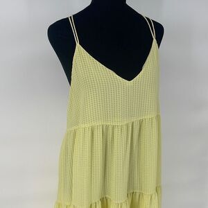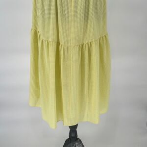 Rebecca Minkoff Womens Sleeveless Zilah Dress Tiered Zip Back Check Ruffle String Strap Crisscross Back Yellow Size Large