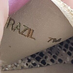 These Rebecca Minkoff wedge sandals are a striking addition to any wardrobe, featuring a captivating snake print design. Crafted with meticulous attention to detail, they offer both style and comfort. The wedge heel provides an elegant lift without sacrificing stability. An adjustable buckle ensures a secure fit, making these sandals a versatile choice for various occasions. Made in Brazil, they reflect a blend of modern fashion and quality craftsmanship.