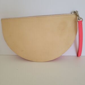 Rebecca Minkoff X By Rosie Jane Feminist Leather Tan Pink Wristlet Zip Half Moon