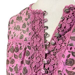 Rebecca Minkoff XS Pink Floral Paisley Bell Sleeve Blouse