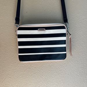 Rebecca Minkoff black and white stripe crossbody tabitha tablet sleeve case