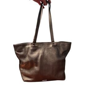 Rebecca Minkoff black leather pebbled tote bag shoulder purse silver hardware