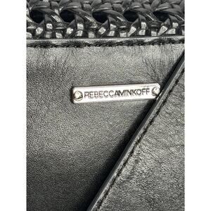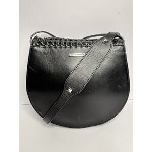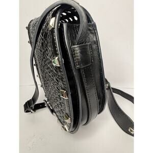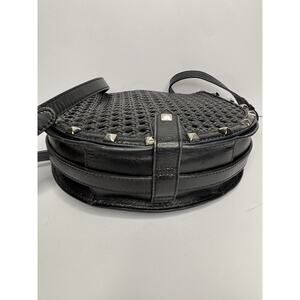 Rebecca Minkoff black studded Leather Saddle bag Crossbody flap snap closure