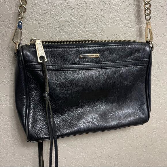 Rebecca Minkoff crossbody leather black purse bag golden chain classic