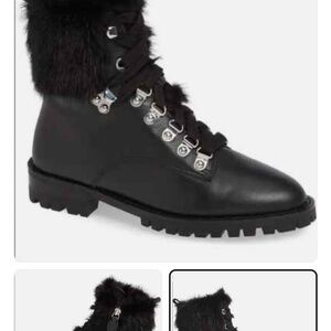 Be ready for fall. Black booties with adorable multi color fur trim in excellent condition.