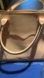This cream color textured leather handbag is in excellent condition. It comes with a detachable adjustable shoulder strap. Inside is plenty of secure storage with 2 zippers and 2 additional pockets