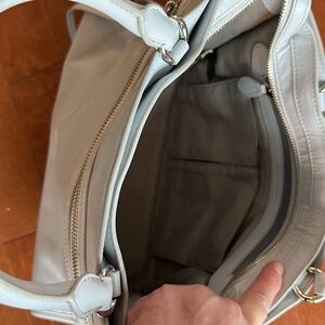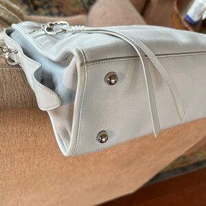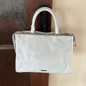 Rebecca Minkoff leather top handle satchel in a periwinkle color.