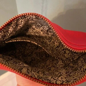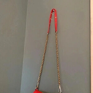 Rebecca Minkoff red leather cross body with gold chain strap and gold accents
