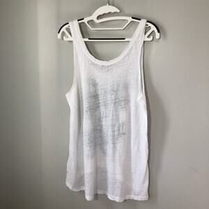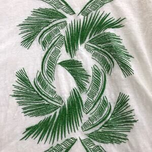 Rebecca Minkoff womens M linen white tank top green palm tree embroidered sheer