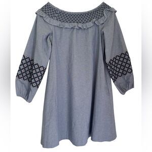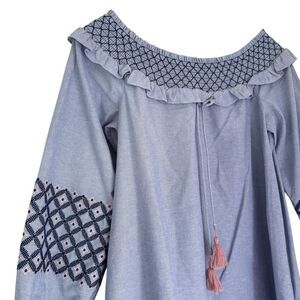 Rebecca Minkoff Blue Chambray Boho Off The Shoulder Shift Golde Dress Size XS